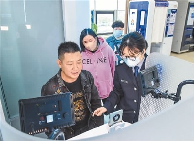 今年,浙江省玉环市公安局在玉环市行政服务中心成立实体化政务服务中心,开展咨询服务、制证出件、审核审批等业务,以数据高效流转帮助提升政务服务效能,人均办件效率提升50%以上。图为工作人员指导市民在办理业务。