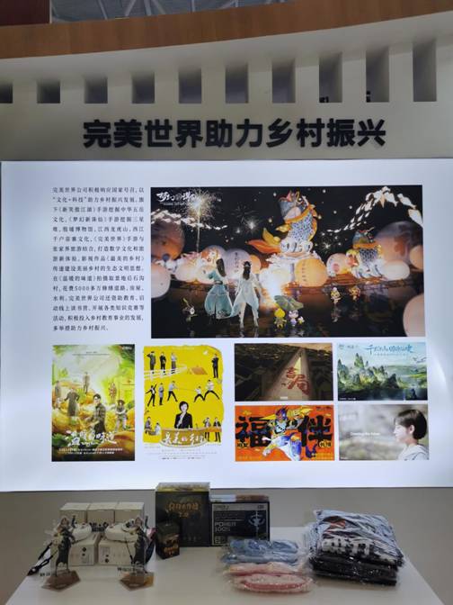 在文旅部的文化产业赋能乡村振兴主题展区,完美世界展示了公司近年来积极响应国家号召,以“文化+科技”助力乡村振兴发展的相关成就,包括旗下《新笑傲江湖》手游和中华五岳联动,启动“五岳群山数字武旅计划”;《梦幻新诛仙》手游与四川广汉三星堆博物馆、安阳殷墟博物馆、江西龙虎山景区和西江千户苗寨四大历史文化机构展开合作,通过数字技术优势,将多件国宝文物和历史人文景观进行数字化还原和演绎等。
