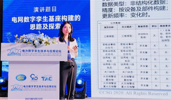 南方电网数字电网科技(广东)有限公司副总经理易晓丽作题为《电网数字孪生基座构建的思路及探索》的报告。报告从电网运行及设备运维的实际应用出发,基于物联网平台及南网智瞰(GIS),探索构建了满足系统仿真、设备状态评估、电网规划等需要的数字电网时空孪生基座,以及数字孪生的共享服务关键技术,打造设备、系统、环境三维度的电网数字孪生体。
