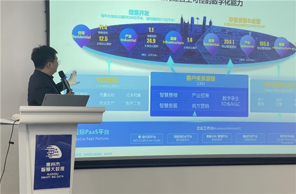 在现场,惠州市智慧大数据有限公司、明源不动产研究院分别进行了《数据要素流通政策及市场化机会》、《打造国企新能力,实现主业新突围》、《国资国企信息技术数字化创新》的专题讲座分享。