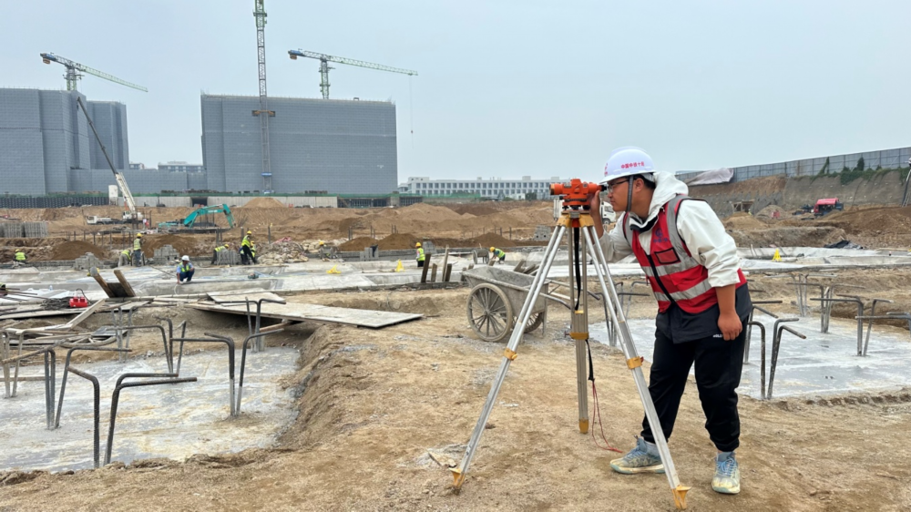 中铁十局烟台八角国际医院项目青年技术人员坚守现场测量放线