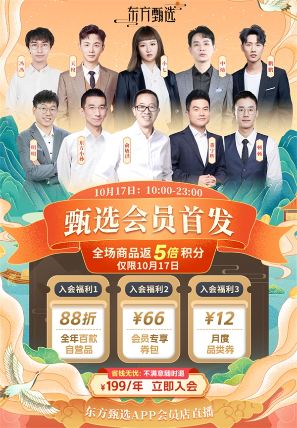 10月17日,东方甄选正式宣布推出付费会员,新东方创始人俞敏洪亲自上阵,和东方甄选CEO东方小孙、主播董宇辉、顿顿、明明等,在自有APP开启全天直播。据了解,东方甄选年费会员定价为199元每年,预计一年最高可省12000元。