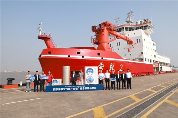 作为中国南北极科考合作伙伴,四季沐歌在南极考察队40次出征之际,联合中国极地研究中心,于基地码头举办了四季沐歌空气能“南极”纪念版新品发布仪式。中国极地研究中心考察保障部主任陈楠,船舶与飞机管理处海务主管、高级船长沈权,原主任、昆仑站首任站长李院生;四季沐歌集团副总裁徐国栋、品牌总监李文平、产品技术研究院院长张立峰等领导出席发布会并为新品揭幕。