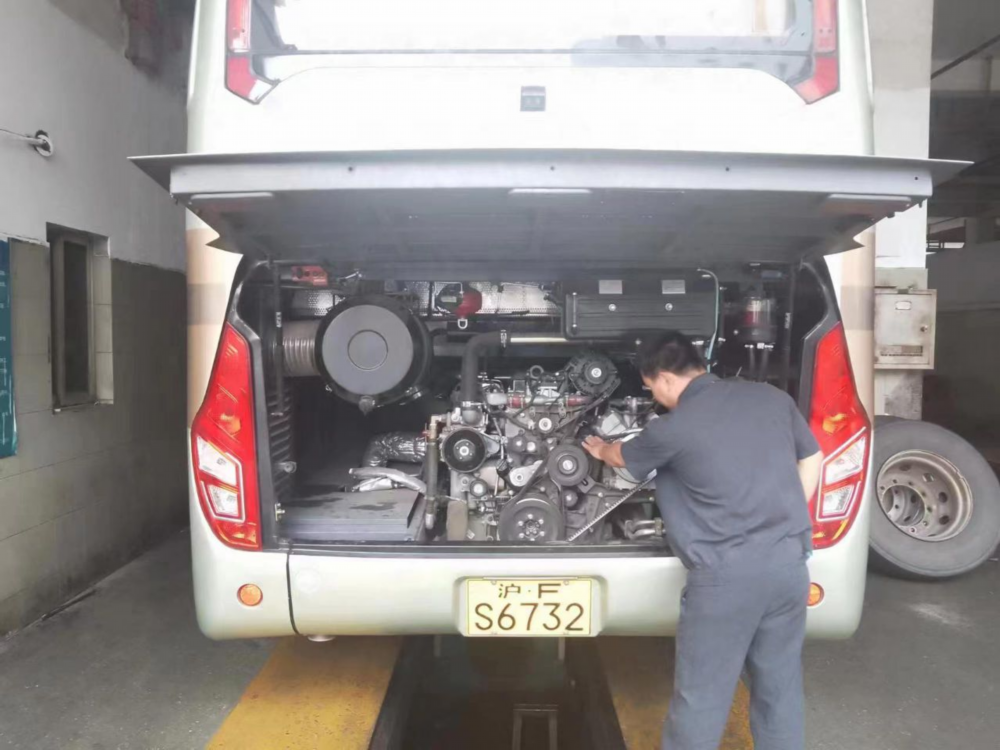 苏州金龙上海售后服务团队对进博会保障车辆进行维保检查