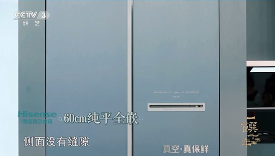 同样在节目中大放异彩的还有海信璀璨真空冰箱503的60CM纯平全嵌设计,三侧不留缝,正面不凸出,冰箱完全隐入橱柜,呈现一体化家居美学,其绝美的颜值得到主持人的强烈“安利”。