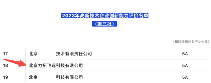 11月16日,北京中关村高新技术企业协会(以下简称“高企协”)经征集报名、评价、评审等层层遴选,公布了第三批2023年高新技术企业创新能力评价(3A-5A)上榜企业50家,测测集团荣获最高5A等级认定,创新能力再获认可!