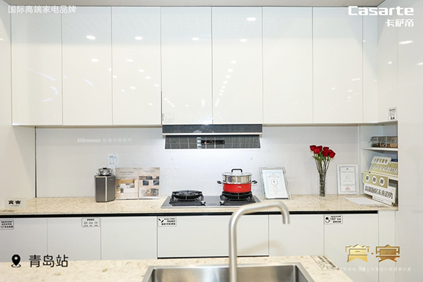就拿此次上市的新品致境厨电套系来说,其中卡萨帝全嵌升降烟机打破行业“烟机变薄吸烟效果变差”的发展瓶颈,将厚度降至325mm,实现全隐嵌入。同时,采用定轴铰链大转角翻板技术,实现110°最大开合角,扩大拢烟范围,保证油烟0逃逸,厨房更洁净。卡萨帝全嵌超薄灶升级了上进风燃烧系统,无需预留灶下补氧空间,灶具底壳压缩至40mm,这样一来,即使600mm高的烤箱或768mm高的洗碗机也能轻松嵌入。