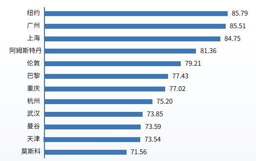 融合活力延续2022年指标评价体系,综合衡量产城融合、文旅融合两项二级指标,同时顾及产业、城市与文化之间的关系。排在融合活力指标前五名的城市分别为纽约、阿姆斯特丹、广州、上海、天津。相较于前两年指数评价结果,国内城市在融合活力方面得分仍维持优势,前五名中国内样本城市占据三席。