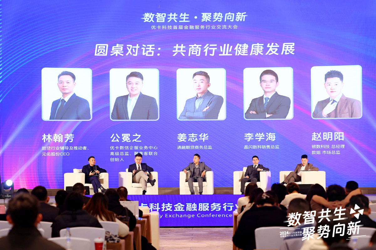 本届大会由优卡科技主办,元佑股份、款姐&袋鼠泡泡、期贷、晶闪数科、轻山科技、吉客展业、九牛汇通信共同支持,会议主题为“数智共生,聚势向新”,旨在通过大会搭建一个深化行业内交流合作的平台,共同探寻数智化时代下金融服务行业的趋势与机遇。