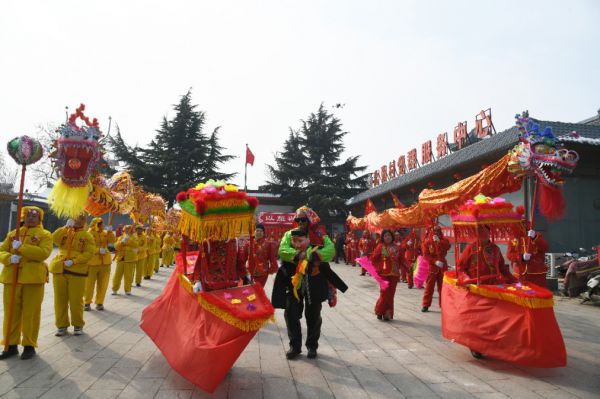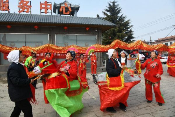 1月30日,走进闻喜县薛店镇北张村文化广场,村民们齐聚一起,正在排练舞龙、划旱船等传统民俗节目,为正月十五全县社火表演做准备。