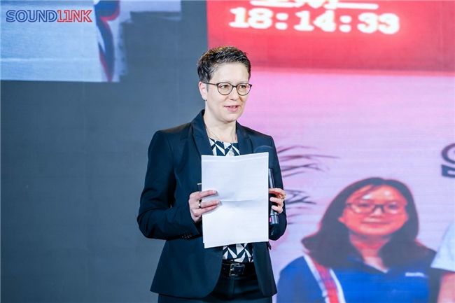 首先,德国Dreve的克斯汀·卡勒特(KerstinKahlert)女士作为全球供应链代表上台发表演讲,她从德国千里迢迢赶到庆典现场送上真挚的祝福和美好的祝愿,她表示在多年以来与SOUNDLINK的合作非常愉悦,感谢SOUNDLINK多年以来对Dreve给予的大力支持,对未来双方的合作,以及Dreve产品通过SOUNDLINK服务更多中国市场客户充满信心。