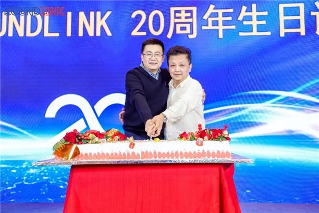 接下来,百助立人(SOUNDLINK)创始人&董事长徐炜先生与战略合作伙伴公司朱慧群总经理在20周年蛋糕面前许下一份美好的愿望,并切下寓意美好的蛋糕。