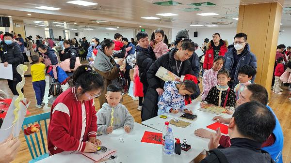 记者在四季青镇新时代文明实践所看到,一进门在签到区,镇域内的书画爱好者、文明志愿家庭现场挥毫泼墨,一幅幅寓意吉祥的“福”字跃然于红纸之上,或秀美遒劲,或潇洒飘逸,传递着龙年的祝福。