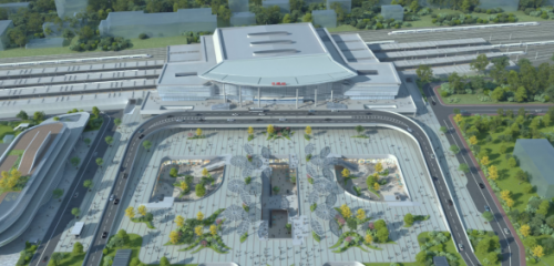 新建日照站位于既有日照站北侧,车场规模4台7线,站房分侧式和高架站房,采用上进下出站型,站房建筑面积43500平方米,新建站台雨棚23219平方米,旅客最高聚集人数可达4000人,为高架候车厅形式的综合性大型站房。新建站房造型以“碧海珍贝”为意向,融入贝壳的形态元素,结合现代的建筑设计手法,打造独具当地特色的新时代高铁站房,体现当地海滨特色。