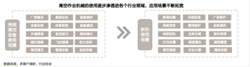 图:高空作业机械的使用逐步渗透进各个行业领域,应用场景不断拓宽